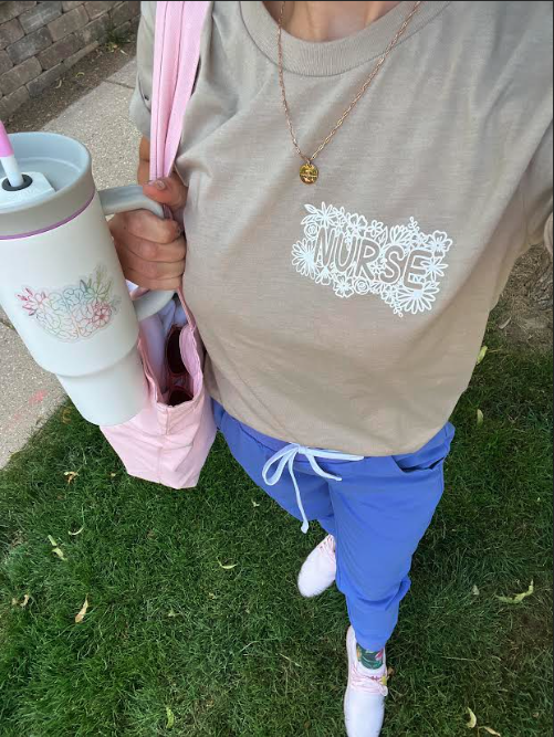 Nurses can’t get enough of MelsCraftyCorner.com’s Floral Nurse T-Shirt! Designed by a nurse and two-time winner of Nurse.org's Best of Nursing Awards, Melanie Van Sistine of @mels.crafty.corner. It’s the perfect mix of comfort, style, and pride. Soft, high-quality fabric meets a cute floral design that lets nurses rep their profession in a fun way, on or off the clock